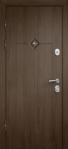Древесные тона. Входная дверь темный дуб и входная дверь темный орех — универсальная классика под бежевые стены и тёплые полы. Дверь входная темный венге даёт максимальный контраст в светлом интерьере и хорошо поддерживается чернёной фурнитурой.